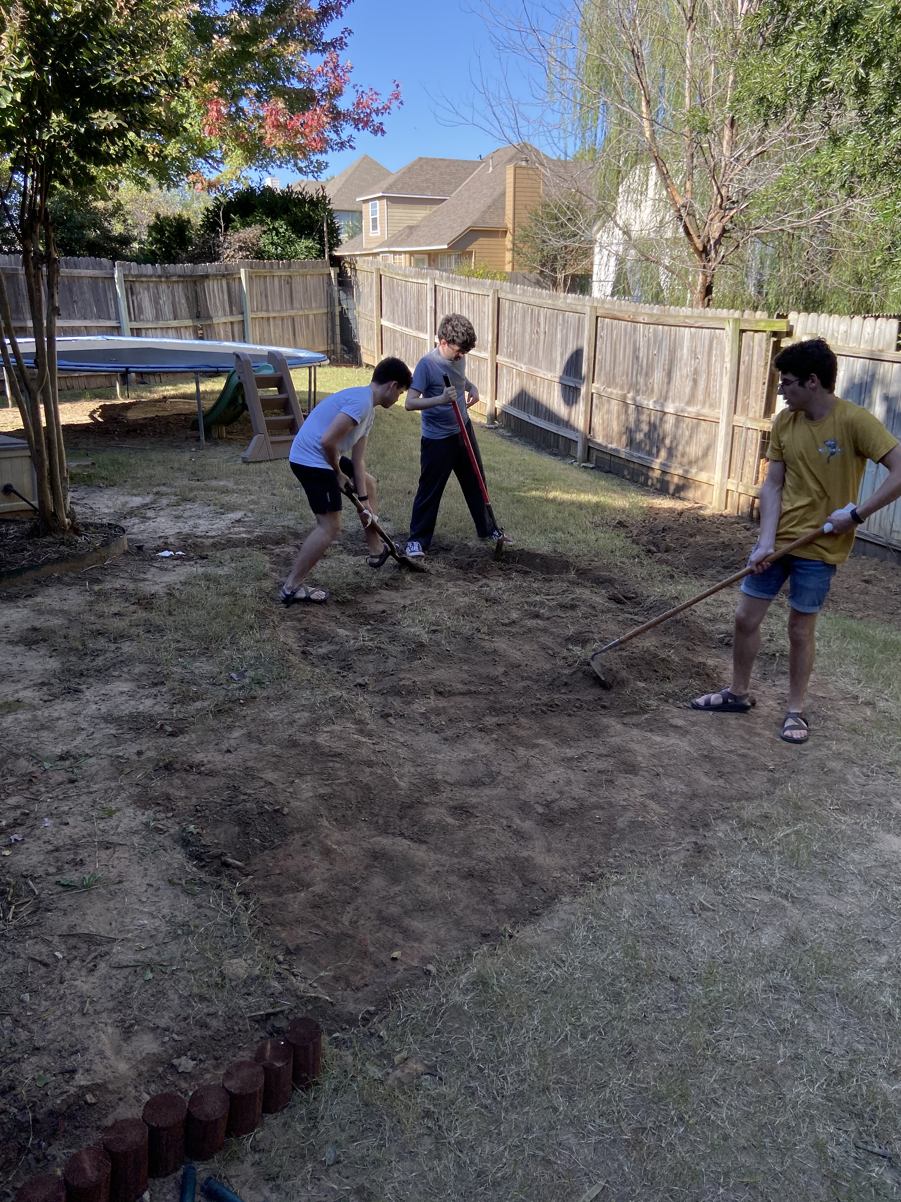 One day in August, as Mark and I were driving around town together, he told me he had begun making plans for a fire pit as a 50th birthday present to me. You guys, I was so surprised I started crying. We hadn’t talked about this dream of mine for a long time, so when he told me his plans, I just felt so…seen. Over the next few weeks we spent time scrolling through Pinterest, collecting ideas and ordering what we needed. We went to Lowe’s and picked out the rock and the border, and we recruited our college boys for the hard labor.